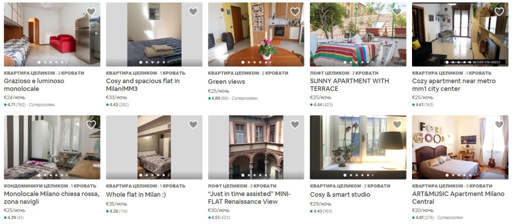 Приклади бронювання житла у Мілані на період 13.02.2020 — 18.02.2020, 5 ночей: