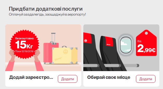 Для того щоб скористатись пропозицією, потрібно забронювати рейси до 19 грудня 2019 та добавити багаж до 15 кг на другому етапі бронювання, під час обрання додаткових послуг.