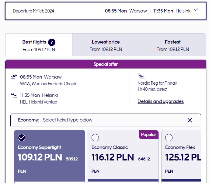 Акція триватиме до 31 березня 2024 року. Діє тільки на рейси з Варшави в Гельсінкі (рейс №AY1142). Вартість квитків — від €25.