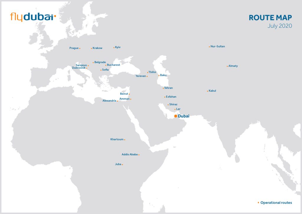 Оновлена мережа міжнародних маршрутів flydubai з Дубая включає наступні міста: