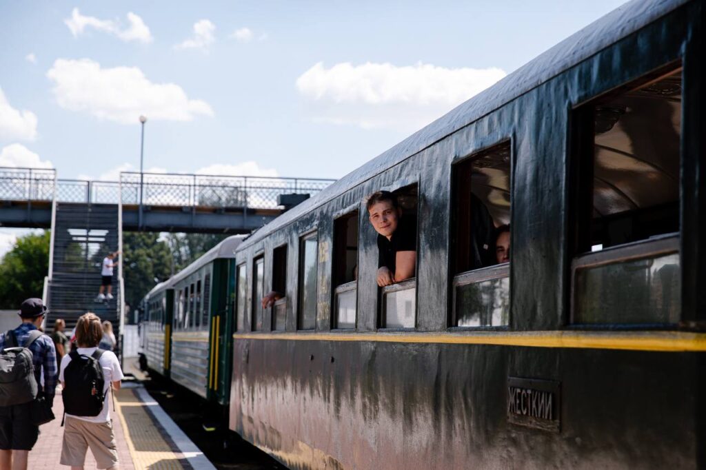 Це подорож на ретропоїзді під тягою найстарішого діючого паровоза в Україні найдовшою вузькоколійкою в Європі.