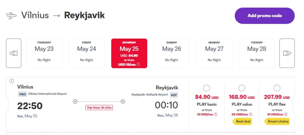 Ісландська бюджетна авіакомпанія PLAY виконує не тільки рейси між Ісландією та країнами Європи, але й також здійснює регулярні рейси до США та Канади.