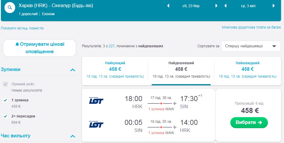 Харків-Сінгапур-Харків (23.03.2019 – 03.04.2019) – €458