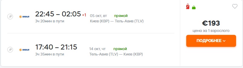 Київ – Тель-Авів – Київ (05.10.2021 – 14.10.2021) – €193