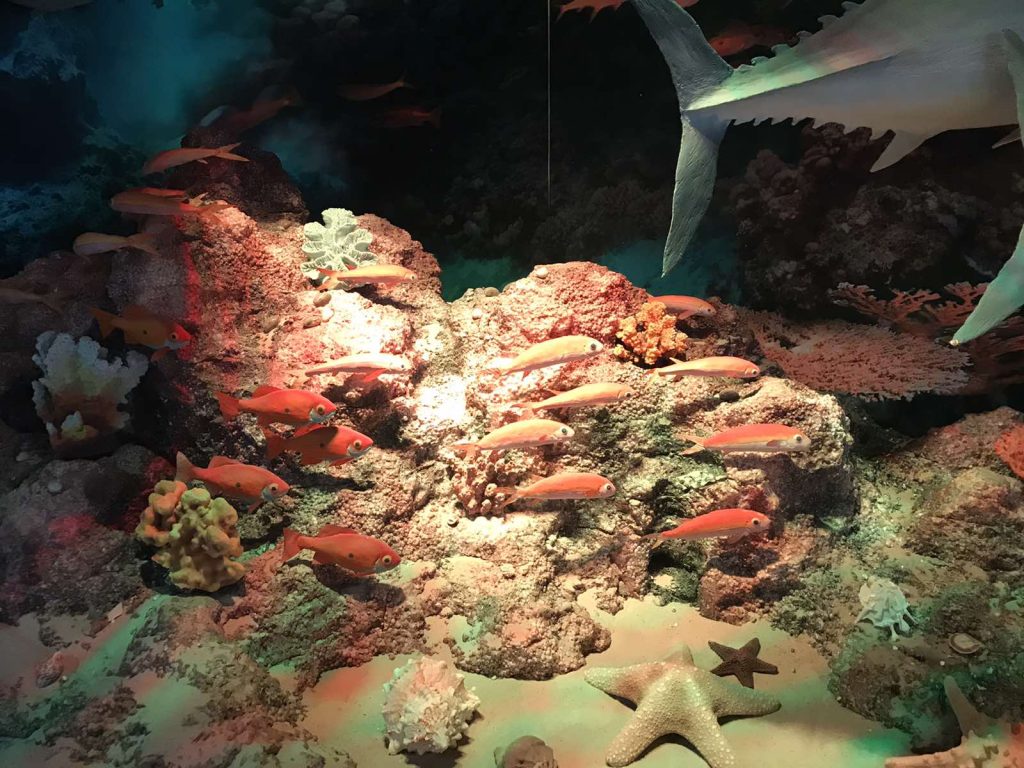 Також, відвідувачам рекомендують подивитись на експозицію «Таємниці Світового океану». Центр виставки – скелет 30-метрового кита, який привезли як подарунок закладу випускники Херсонського морехідного училища.