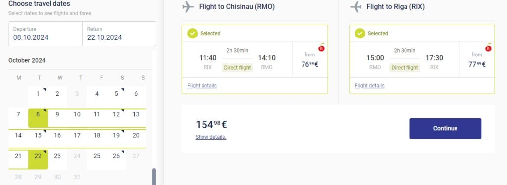 Рига – Кишинів – Рига (08.10.2024 – 22.10.2024) – €155