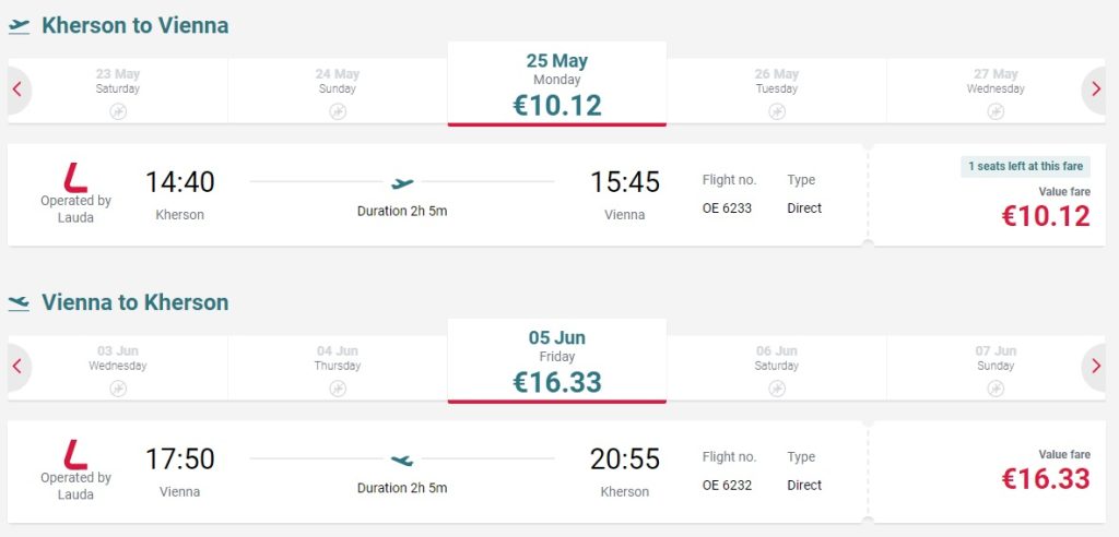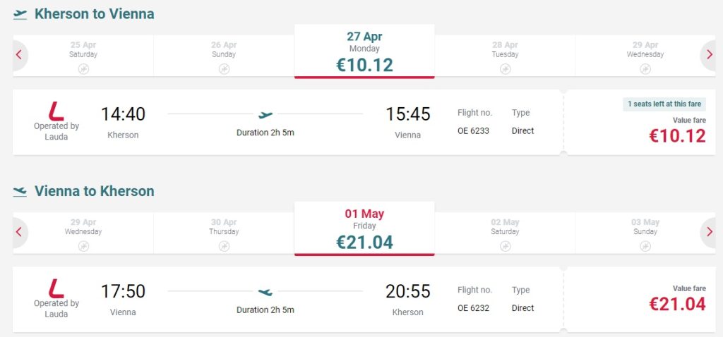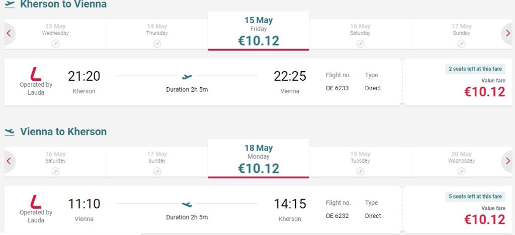 До відкриття нового напрямку Херсон-Відень, австрійська авіакомпанія Laudamotion пропонує обмежену кількість квитків за ціною від €10 в один бік.