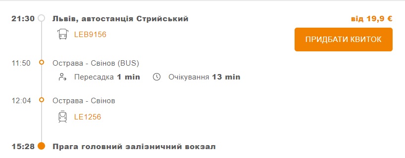 Нічні автобуси зі Львова до Чехії курсуватимуть щоденно. Відправлення зі Львова о 21:30, прибуття до Острави об 11:50, до Праги о 15:28. Автобус курсує через Краків та Катовіце.