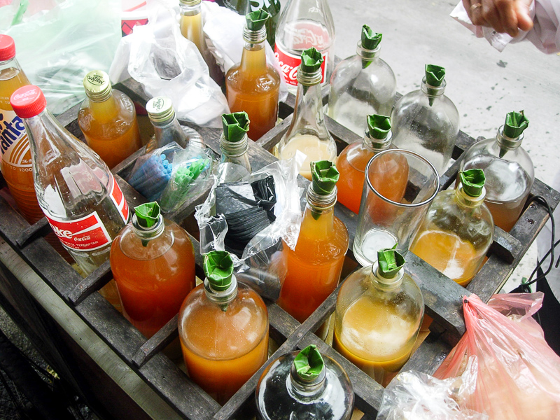 Втім, я зустрічав жінок, що виготовляють і продають джаму, по всій Індонезії – від Медану на Суматрі до Соронга на острові Нова Гвінея. Вони торгують цими напоями, носячи їх за спиною в плетеному з молодого бамбука кошику, загорнутому в шматок тканини, наче наплічник. Я часто купую у них щось «смачненьке», просто кажу: «Мені –від усього!». Після цього продавчиня міксує рідини жовтого, коричневого, зеленого і сірого кольору в одну склянку, взявши за це $0.2. Випивши ту гірку мікстуру, я завжди отримую навздогін солодкий напій з клейкого рису і пальмового цукру, який допомагає змити гіркоту.