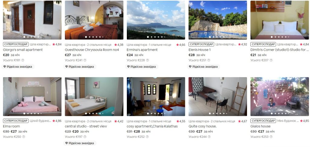 Приклади бронювання житла на Криті на період 05.06.2020 — 13.05.2020, 8 ночей: