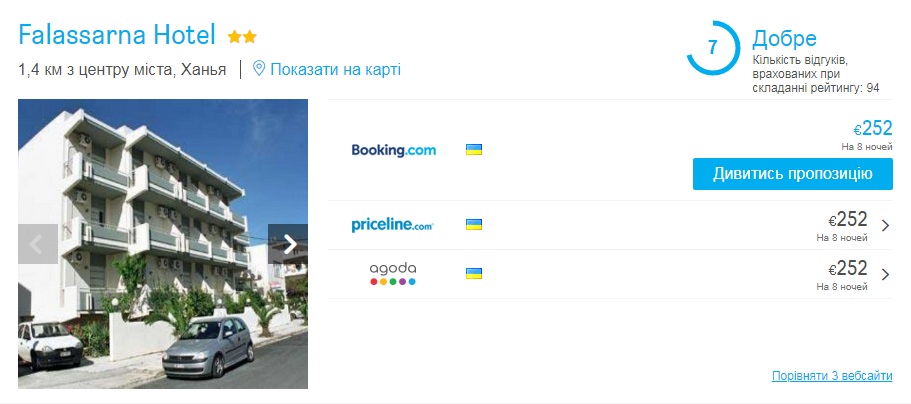 - Hotelscombined.сom — порівняння цін на готелі, знижки до 50%