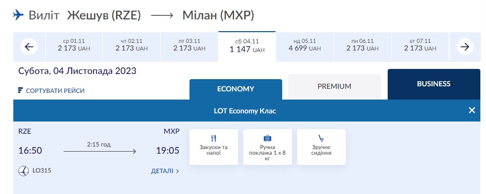 Ряшів — Мілан (04.11.2023) – €29