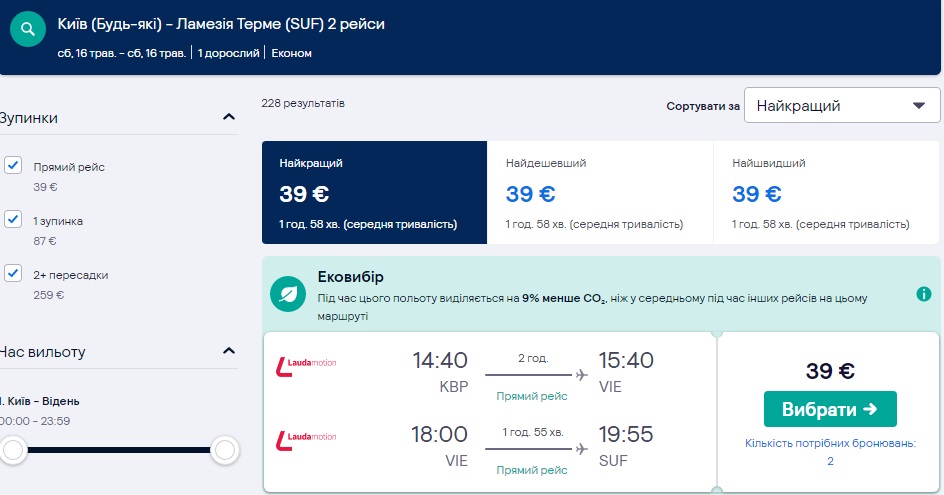 Київ – Відень – Ламеція-Терме (16.05.2020) – €39