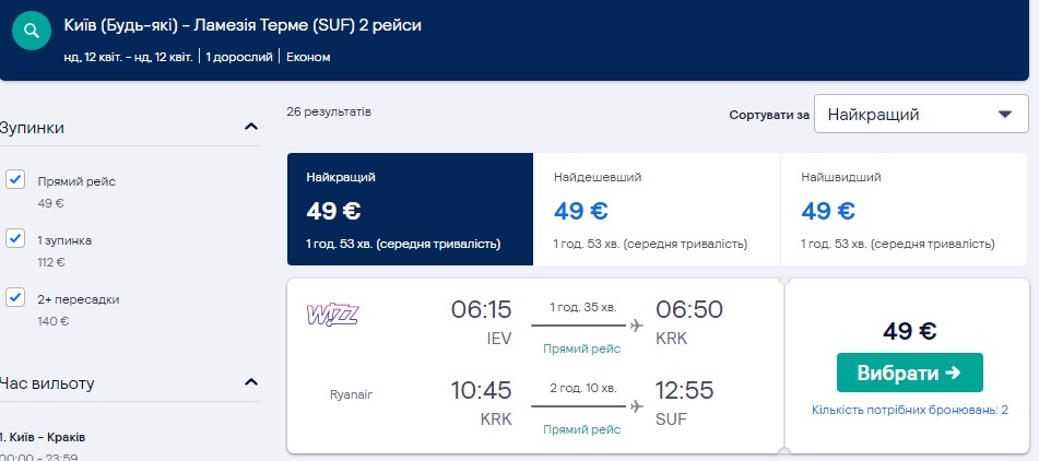 - Kiwi.com — зручний пошук перельотів по лоукостам