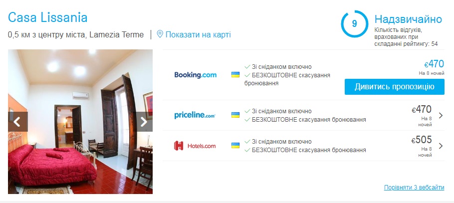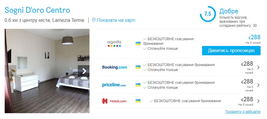 - Hotelscombined.сom — порівняння цін на готелі, знижки до 50%