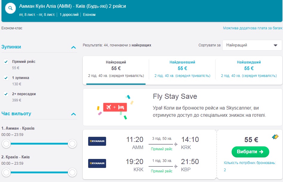 Амман-Краків-Київ (08.11.2019) – €55