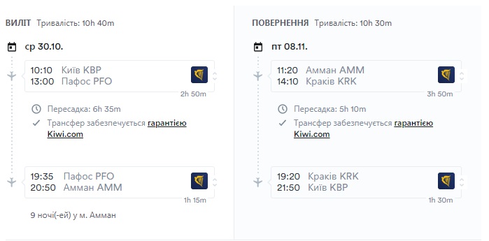 Київ-Пафос-Амман (30.10.2019) – €57