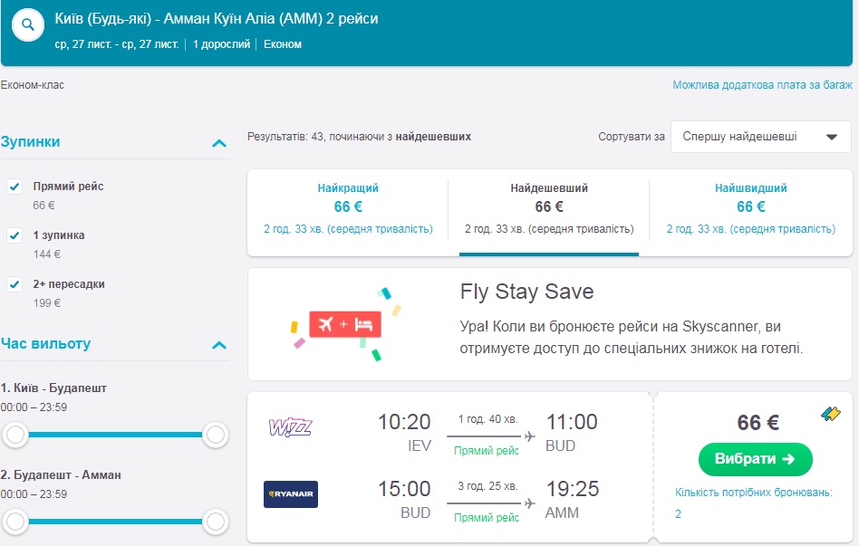 Київ-Будапешт-Амман (27.11.2019) – €66