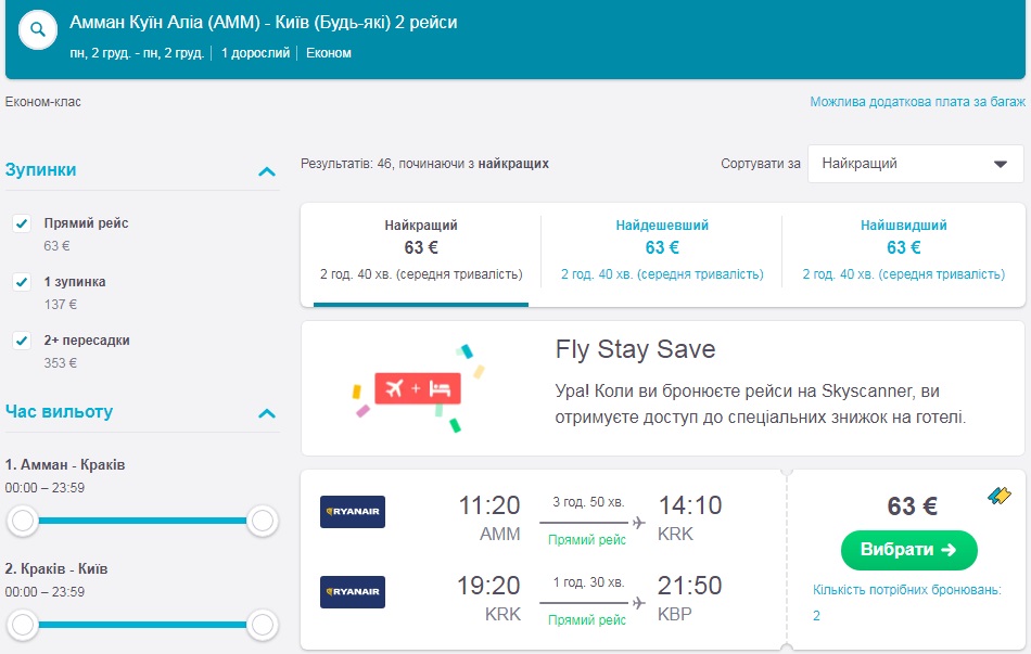 Амман-Краків-Київ (02.12.2019) – €63