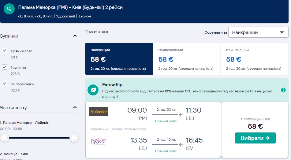 Пальма-Лейпциг-Київ (08.02.2020) – €58