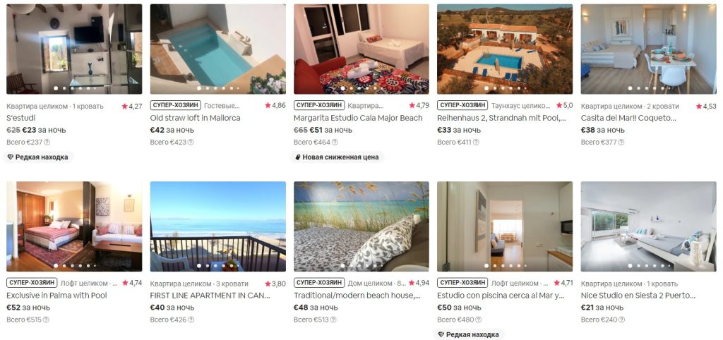 Приклади бронювання житла на Майорці на період 04.02.2020 — 12.02.2020, 8 ночей:
