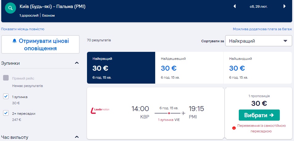 Київ-Відень-Пальма (29.02.2020) – €30
