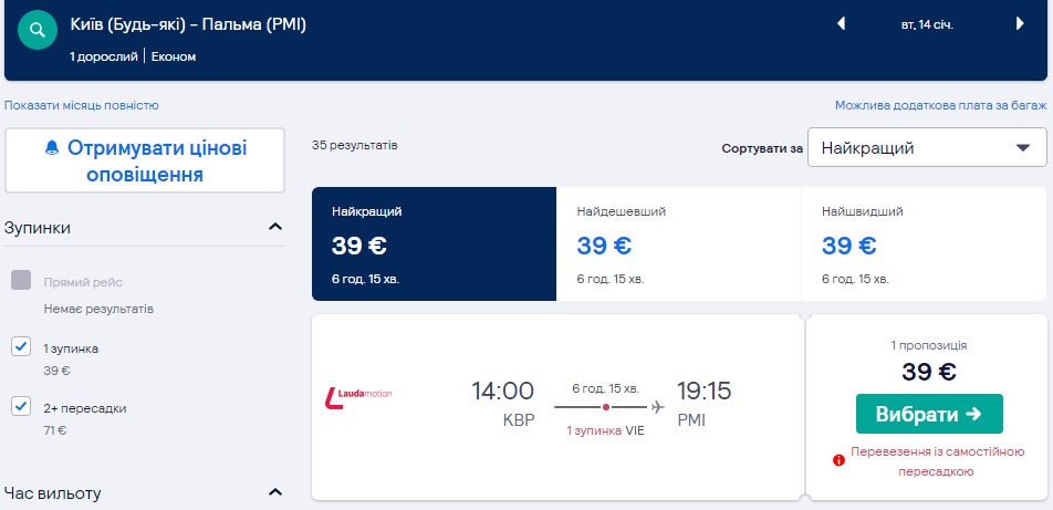 Київ-Відень-Пальма (14.01.2020) – €39