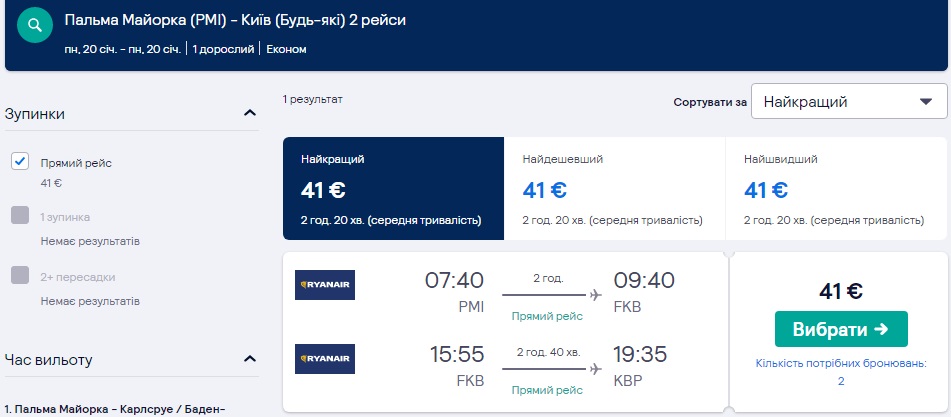 Пальма-Карлсруе-Київ (20.01.2020) – €41