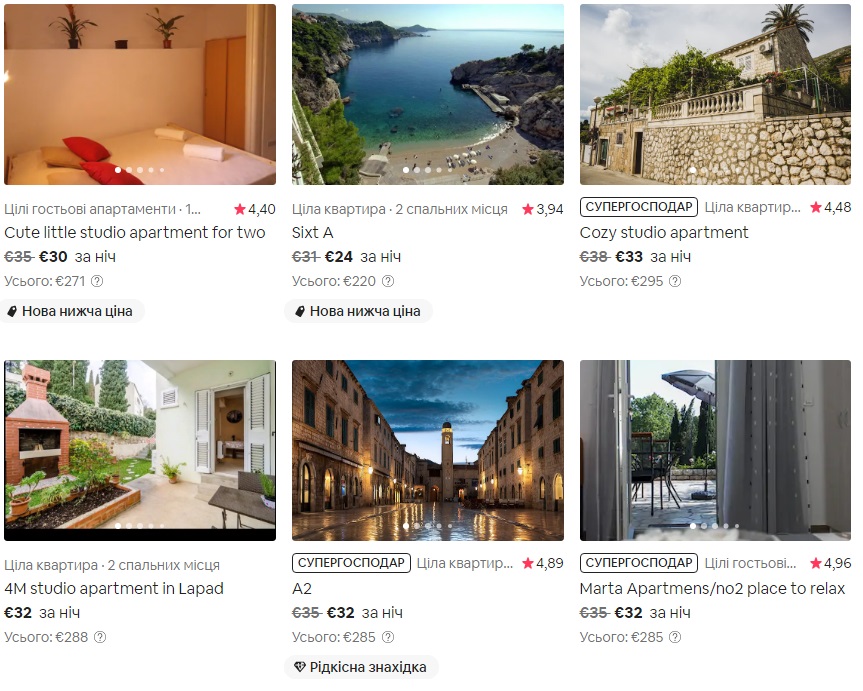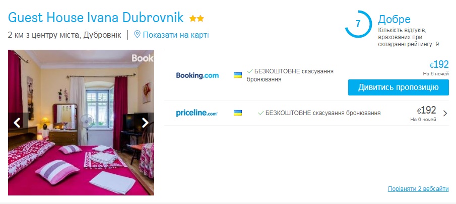 Приклади бронювання житла у Дубровніку на період 16.05.2020 — 24.05.2020, 8 ночей: