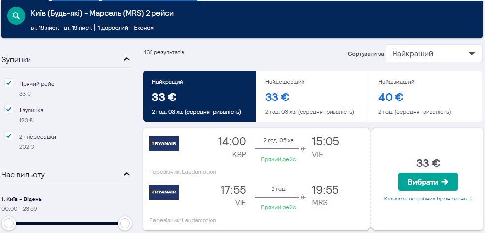 Вартість усіх авіарейсів з Києва у Марсель – €61 туди-назад.