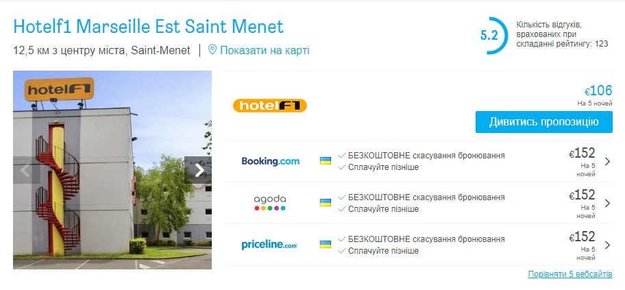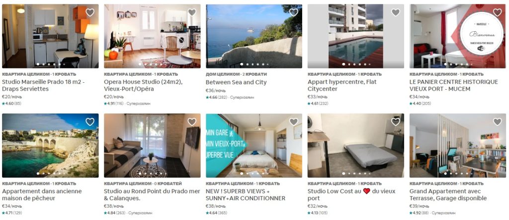 Приклади бронювання житла на Марселі на період 19.11.2019 — 24.11.2019, 5 ночей: