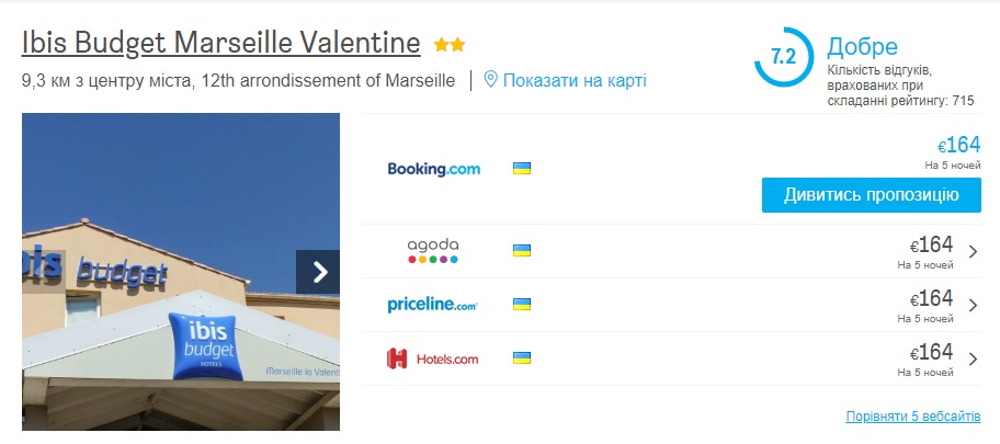 Для комфортнішого проживання – Ibis Budget Marseille Valentine – від €164 за двомісний номер.
