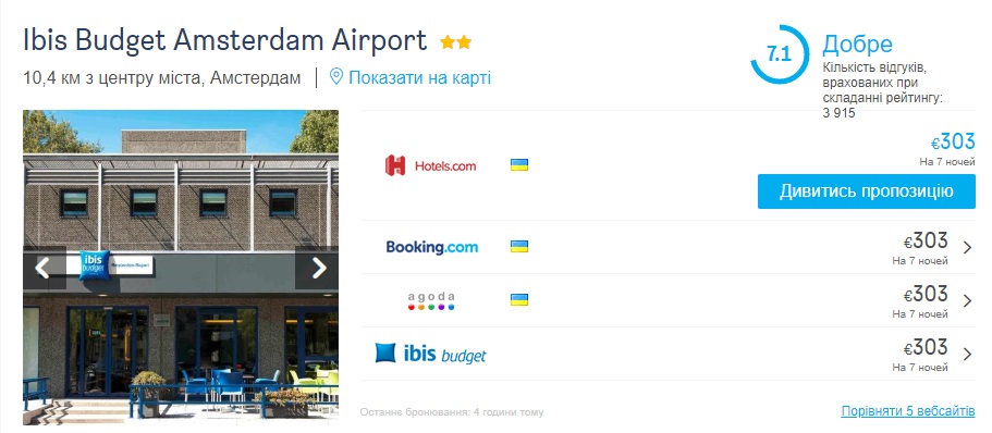 Для комфортнішого проживання – Ibis Budget Amsterdam Airport – від €303 за двомісний номер.