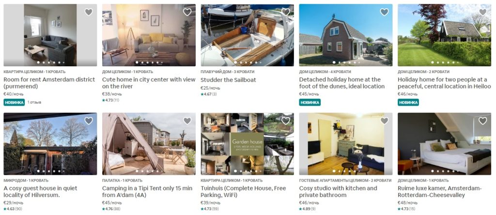 Приклади бронювання житла у Амстердамі на період 28.11.2019 — 05.12.2019, 7 ночей: