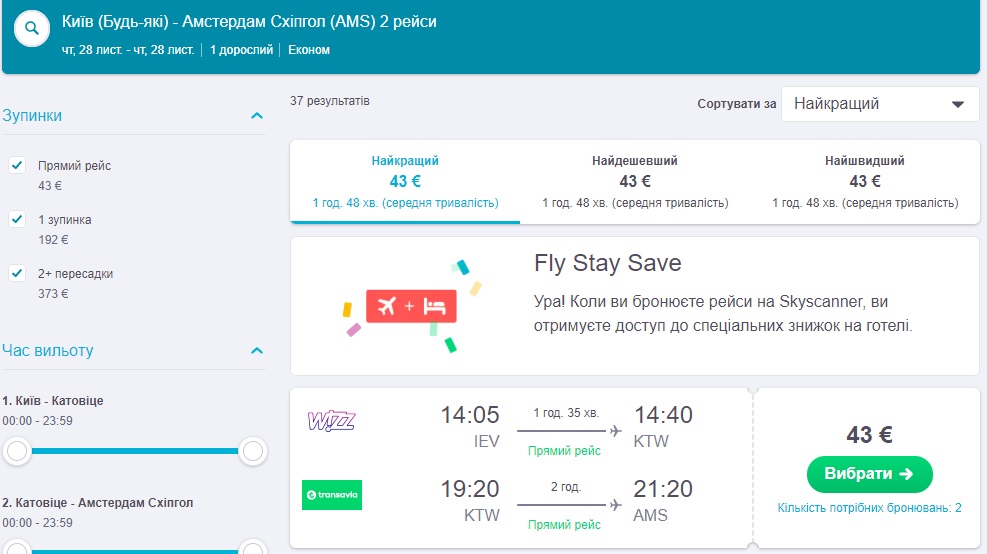 Київ-Катовіце-Амстердам (28.11.2019) – €43