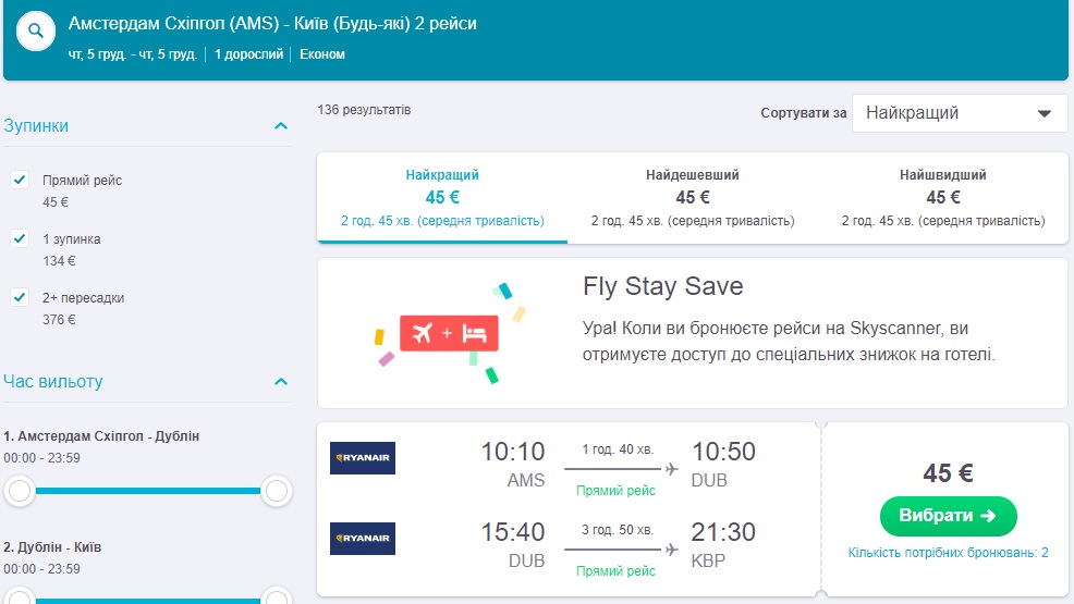 Амстердам-Дублін-Київ (05.12.2019) – €45