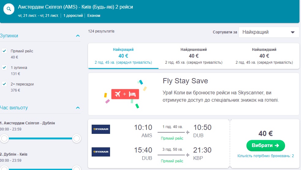 Амстердам-Дублін-Київ (21.11.2019) – €40