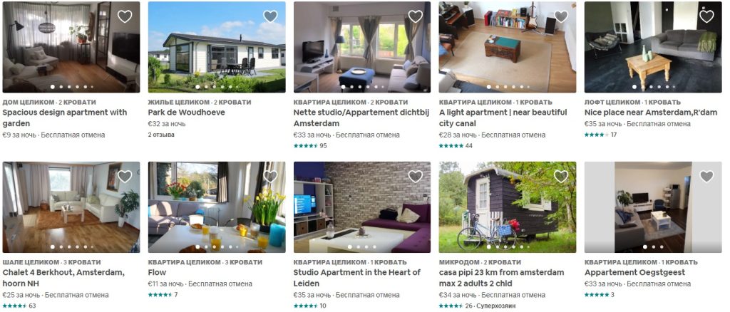 Приклади бронювання житла в Амстердамі на період 06.06.2019 — 11.06.2019, 5 ночей: