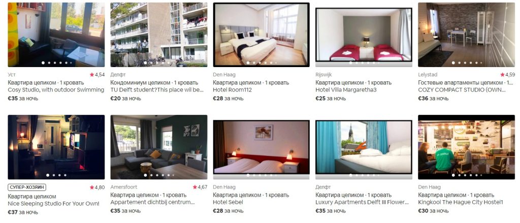 Приклади бронювання житла у Амстердамі на період 26.01.2020 — 30.01.2020, 4 ночі: