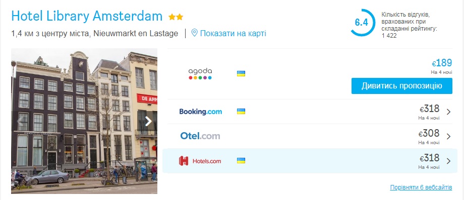 Щоб не переплачувати комісій радимо порівнювати ціни на Hotelscombined.сom.
