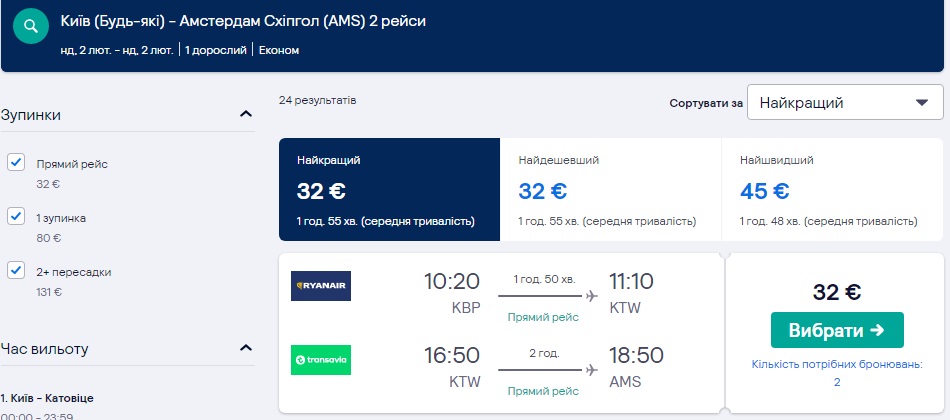Київ-Катовіце-Амстердам (02.02.2020) – €32