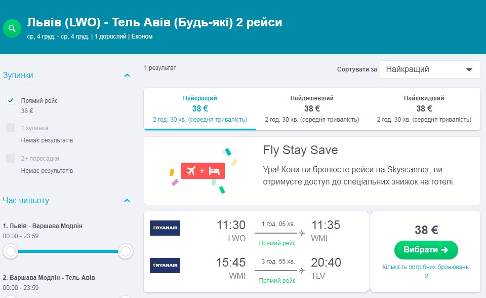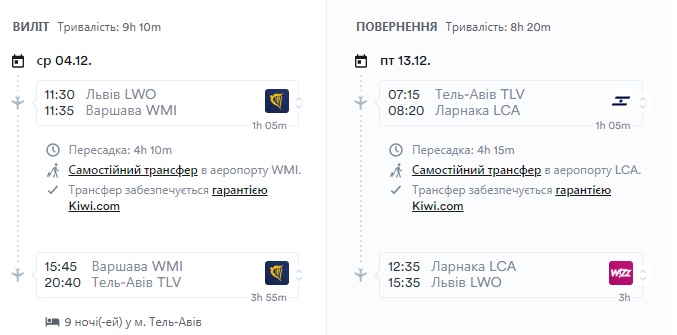 Львів – Варшава – Тель-Авів (04.12.2019) – €38