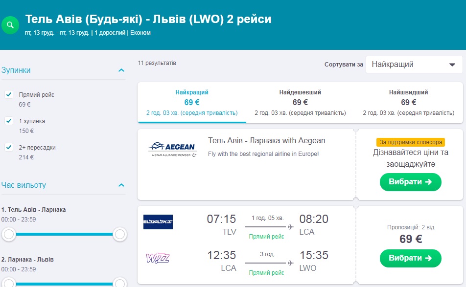 Тель-Авів – Ларнака – Львів (13.12.2019) – €69