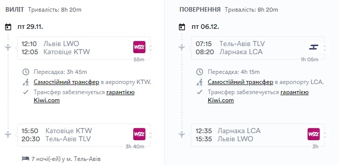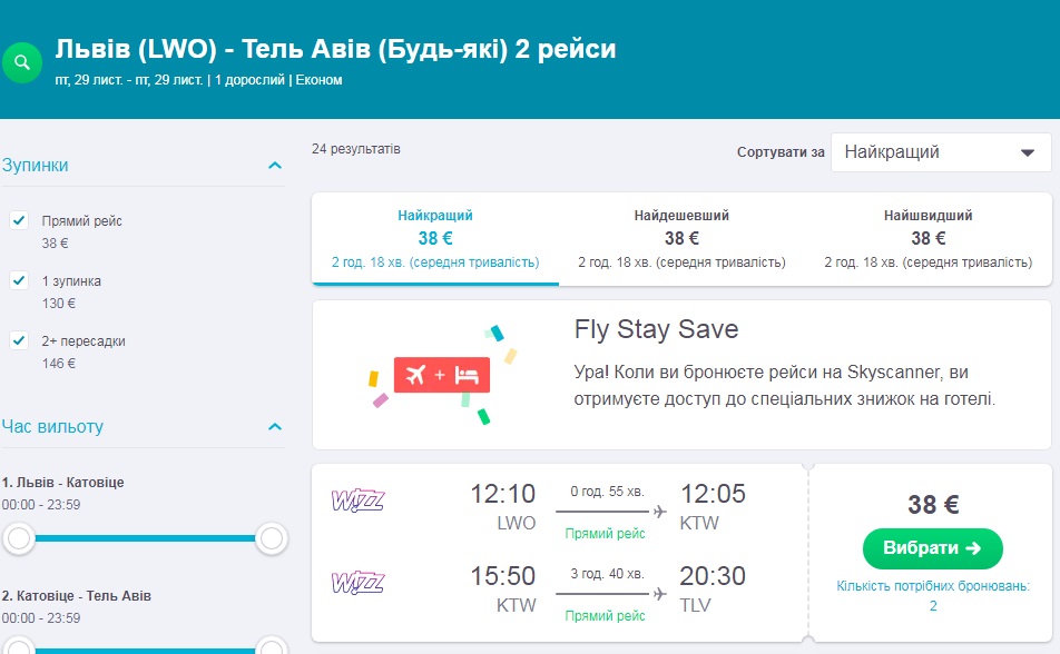 Львів – Катовіце – Тель-Авів (29.11.2019) – €38