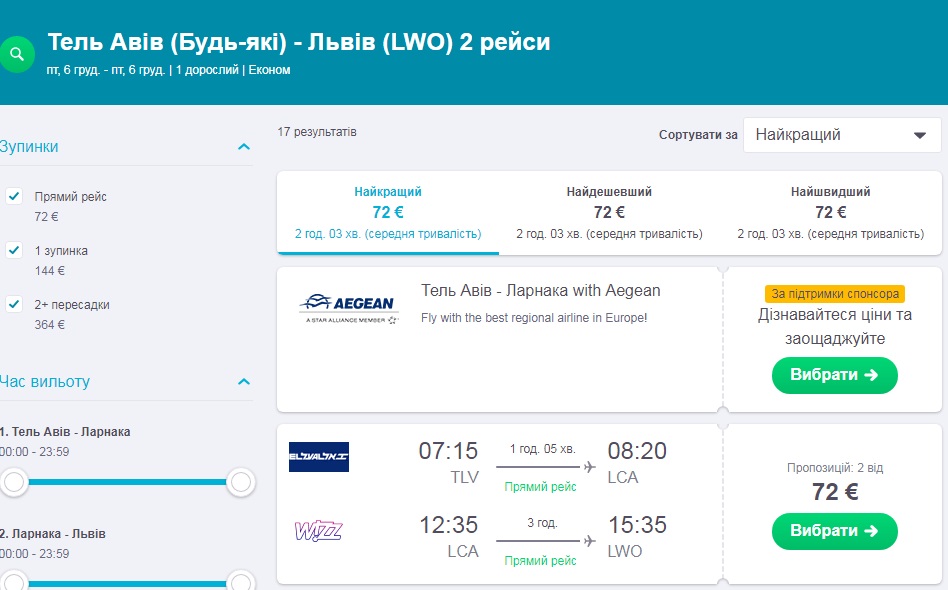 Тель-Авів – Ларнака – Львів (06.12.2019) – €72