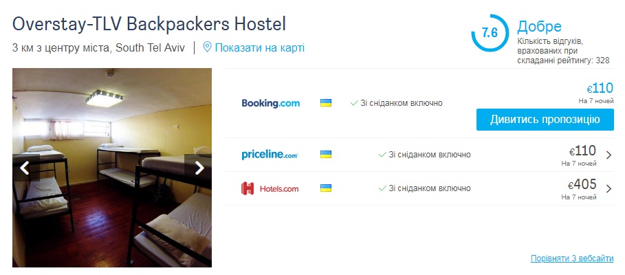 Для бюджетного проживання – Overstay-TLV Backpackers Hostel – від €110 за місце у хостелі.