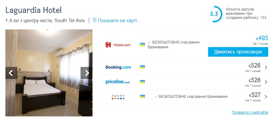Щоб не переплачувати комісій радимо порівнювати ціни на Hotelscombined.сom.