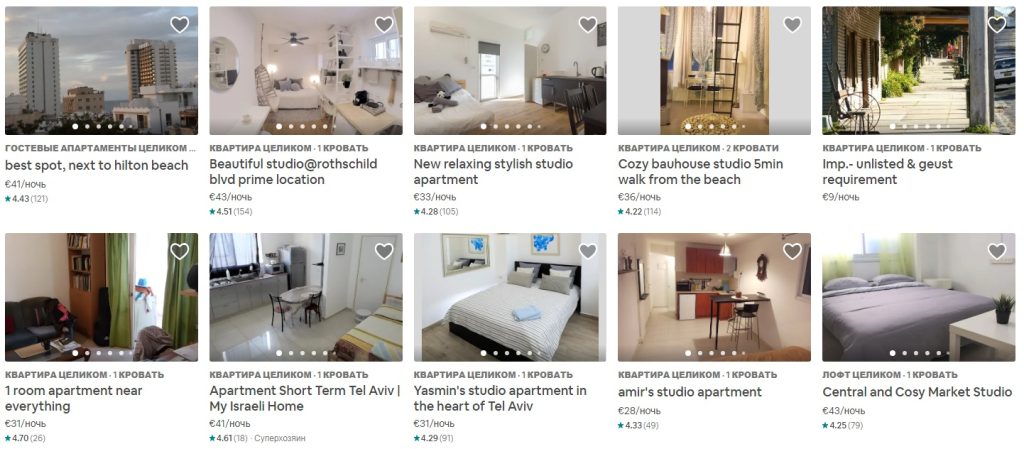 Приклади бронювання житла у Тель-Авіві на період 29.11.2019 — 06.12.2019, 7 ночей: