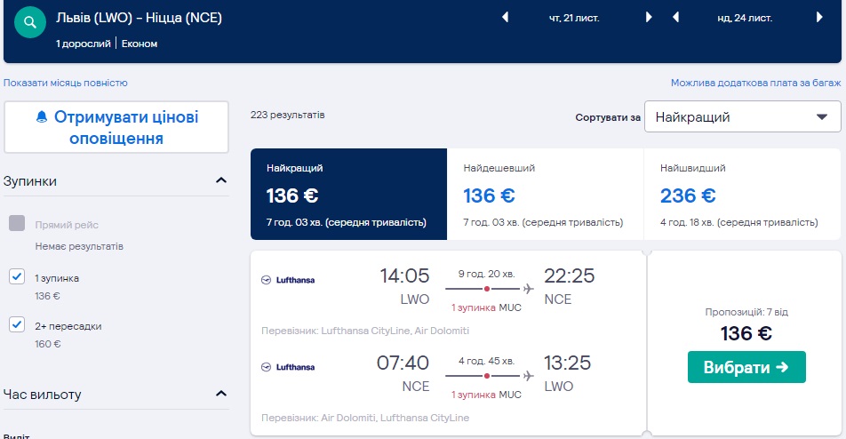 Львів-Ніцца-Львів (21.11.2019 – 24.11.2019) – €136