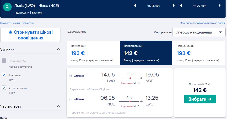 Німецька авіакомпанія Lufthansa знизила ціну на переліт зі Львова у Ніццу протягом зимового періоду.